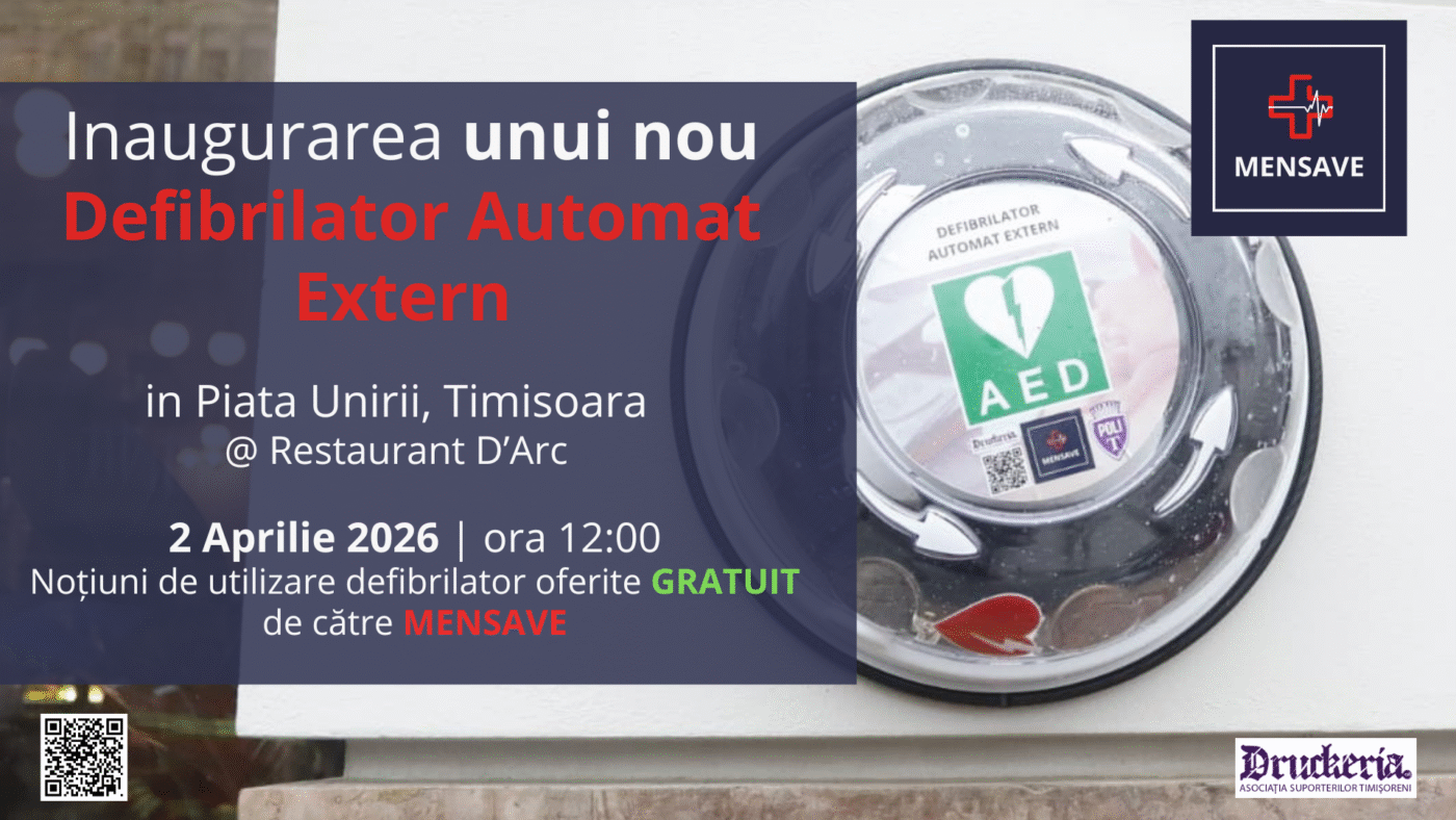 Defibrilatorul va fi instalat în data de 2 aprilie, ora 12:00, pe exteriorul Restaurantului D’Arc, Piața Unirii nr. 5, iar instruirea gratuită pentru comunitate va avea loc în aceeași zi, de la ora 13:00, fiind deschisă tuturor celor interesați să învețe cum pot salva o viață.
